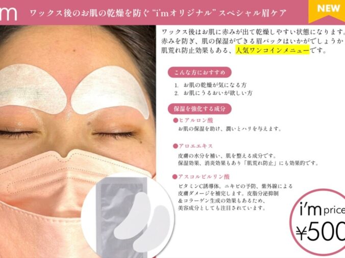 I’m/蒲田/アイブロウ/アイブロウサロン/眉/眉毛/ハリウッドブロウリフト/メンズ眉/メンズ/ワックス/眉毛専門サロン/眉毛専門店/まゆげ/美眉/脱毛/眉毛サロン/学割U24/ララピール/肌育