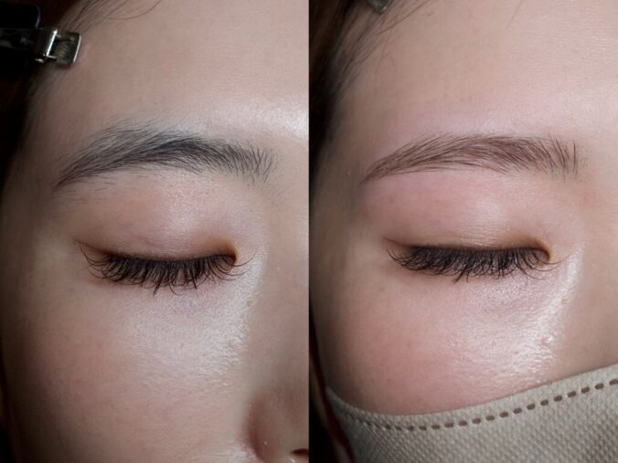 細かい産毛を活かして左右差を近づけた仕上がりに。