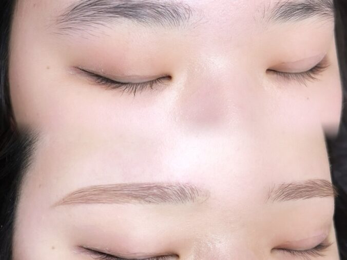 柔らかい印象になるよう、間引きで眉の濃淡をなくし