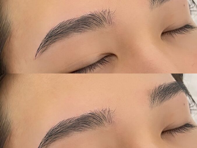 ハリウッドブロウリフトで眉の毛流れを整えてワックスで周りの余分な毛を除去しました^^