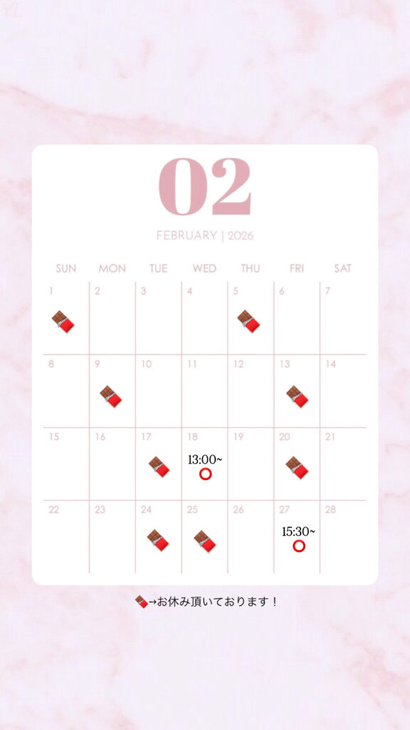 アイブロウサロンi‘mのyuuri です!2月の日程をお知らせいたします!!