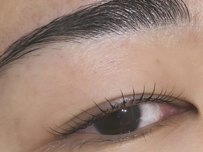 眉頭を立ち上げ、他は自然な毛流れになるようにパーマをかけ、自眉を活かしたデザインにさせて頂きました♪
