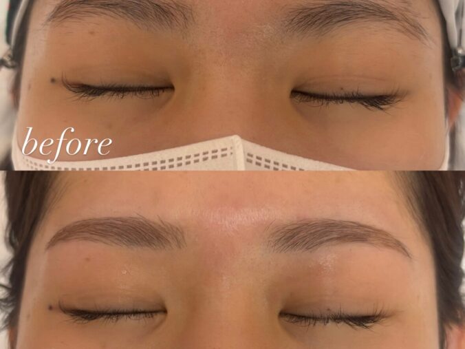 周りの余分な毛が取れることで、ラインがはっきりとした眉に!
