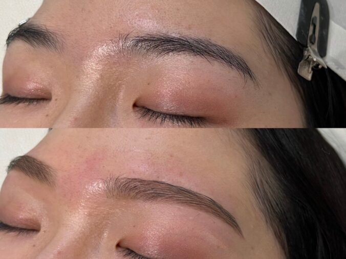 HBLをする事で毛流れが綺麗見えアウトラインができるためメイクの書き足しも眉尻のみで行ける場合もございます!