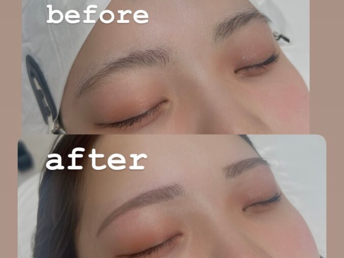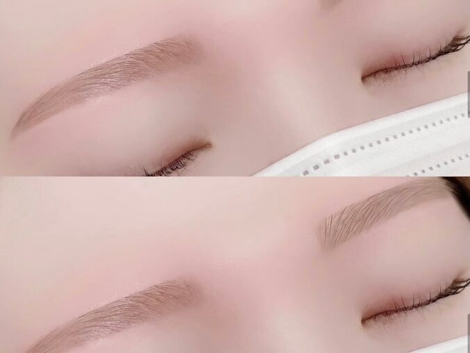 自眉毛が少し角度があるお客様に合わせて綺麗めでシャープなデザインにさせて頂きました^^♪