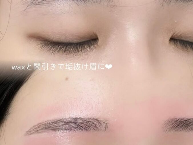 - 眉毛アイブロウデザインWAX+間引き(毛量調整)+メイク仕上げ¥4,700